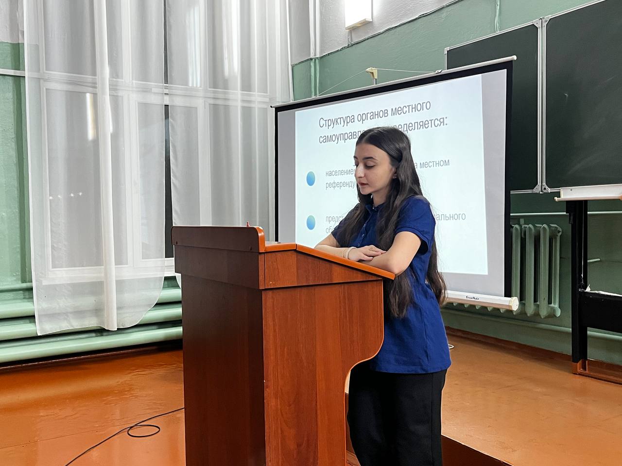 В первой половине мероприятия были рассмотрены несколько тем: три ветви власти в Российской Федерации, структура местного самоуправления, функции и деятельность Молодёжного парламента, основные вопросы по теме «Конституция РФ».