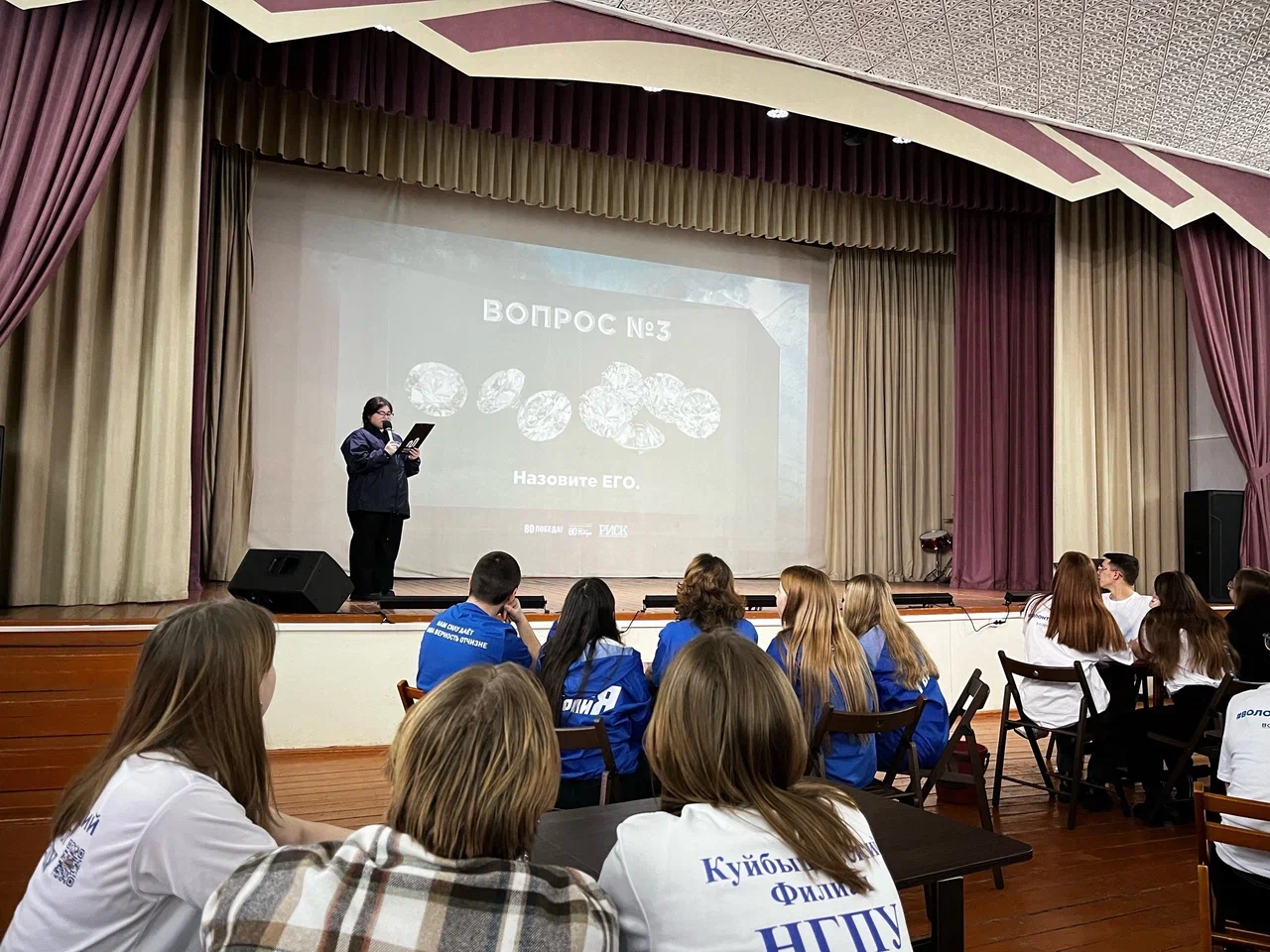 4 февраля студенты факультета ФППО Куйбышевского филиала ФГБОУ ВО «НГПУ»: Поликарпова Алина, Мохова Елизавета, Скоробогатов Сергей и Медведева Тамара проявили свои интеллектуальные способности, приняв участие в захватывающей и познавательной районной игре под названием «Высота 102.0». Это мероприятие, посвященное одной из самых героических страниц истории Великой Отечественной войны – Сталинградской битве, стало продолжением серии мероприятий, приуроченных ко Дню воинской славы: Дню победы в Сталинградской битве и проходило в рамках празднования 80-летия победы в ВОВ.