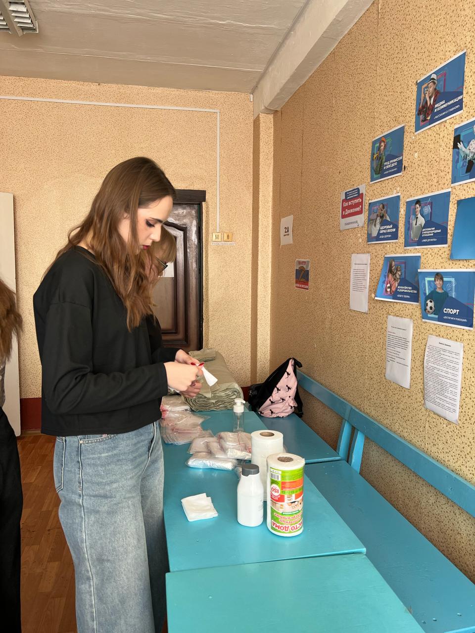 20 февраля 2025 года студенты профилей «Иностранный (английский) язык и иностранный (немецкий) язык», активисты молодежного клуба «Первые», продемонстрировали свою солидарность и неравнодушие, изготовив своими руками 198 комплектов сухих армейских душей. Эти простые, но крайне важные средства гигиены, облегчат быт солдат на передовой и помогут им поддерживать чистоту и здоровье в сложных условиях. Также ребята учились плести тактические браслеты.