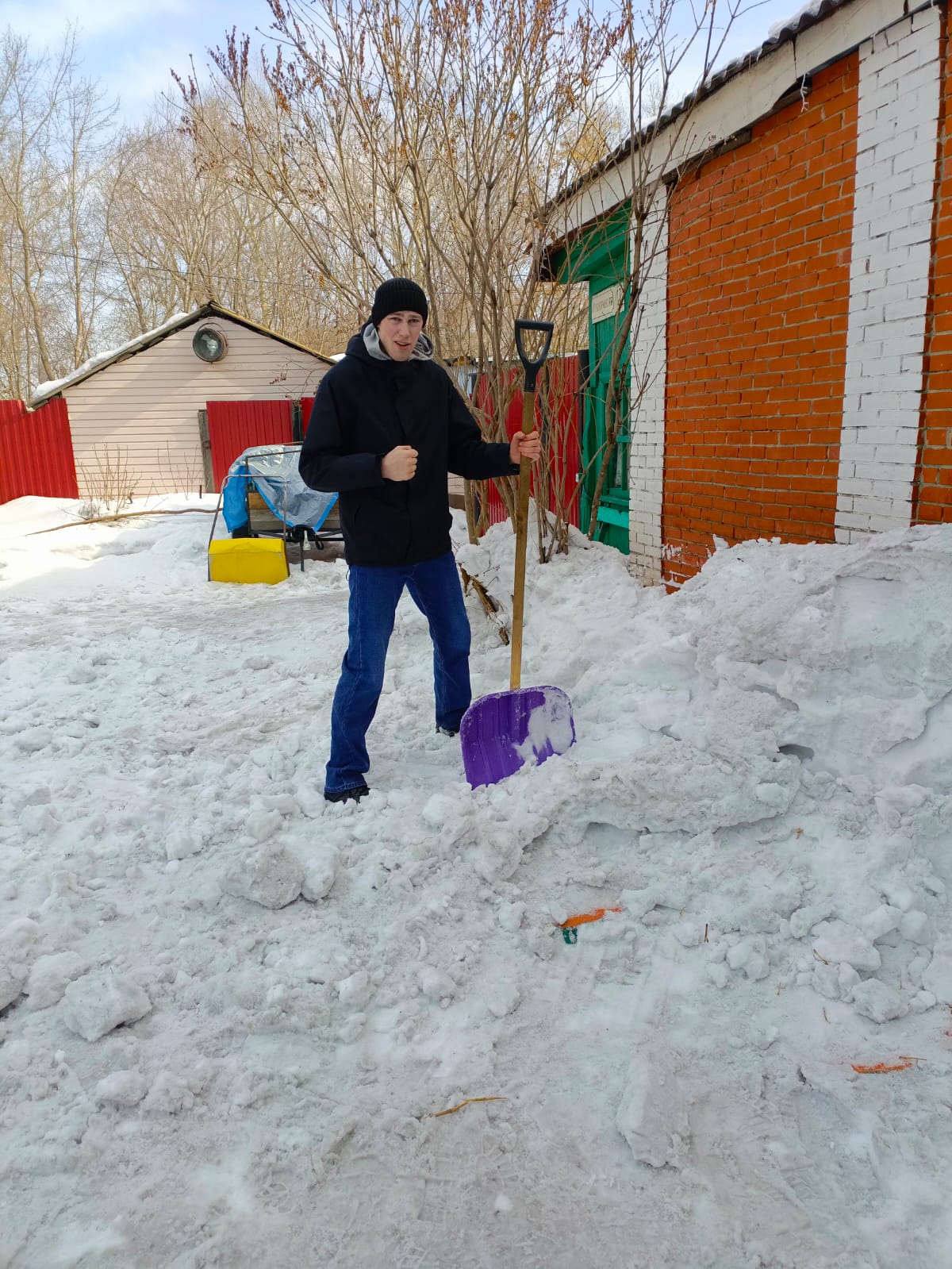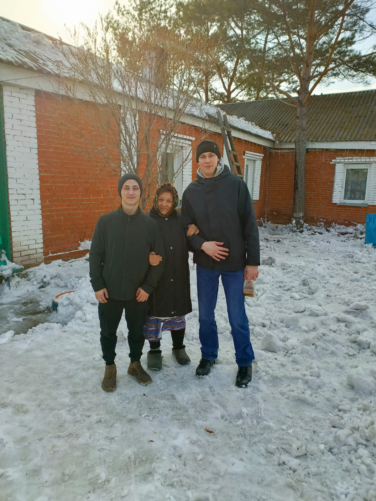 18 марта 2025 года Алексей Габранов, Вадим Леванский и Илья Козлов вновь откликнулись на призыв о помощи и отправились к Надежде П., чтобы помочь убрать снег во дворе ее дома.