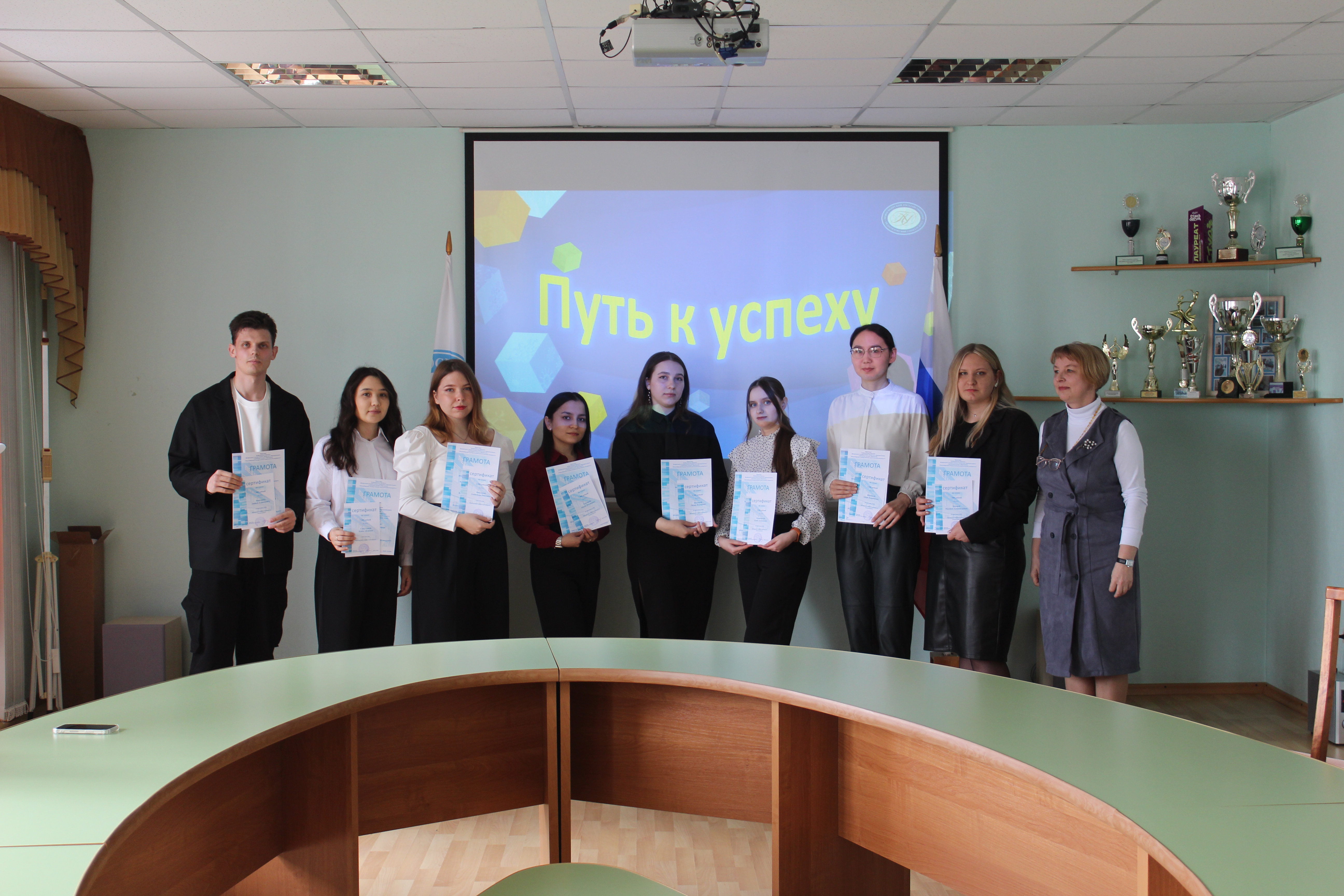 В центре внимания оказались 27 студентов, чьи имена стали символом академического успеха. Их заслуги были отмечены в четырех престижных номинациях: «Золотой дебют» - эта номинация чествовала самых талантливых первокурсников, чья первая сессия стала ярким стартом на пути к вершинам образования. Их усердие и целеустремленность вселяют уверенность в будущем науки. «Галерея отличников»: в этой номинации были отмечены студенты разных курсов, чей вклад в академическую жизнь филиала особенно весом. Их пример вдохновляет и мотивирует, демонстрируя, что успех – это результат упорного труда и любви к знаниям. «Блистательный результат» - эта номинация была посвящена тем, кто, за весь период обучения получил всего одну отметку «хорошо» за сессии. Их настойчивость и умение преодолевать препятствия достойны восхищения. «Академическая легенда» - эта высшая награда была вручена студентке, чей безупречный академический путь стал эталоном для подражания. Ее имя навсегда вписано в историю филиала как символ академического совершенства. Завершилось мероприятие уютным чаепитием, где студенты смогли пообщаться в неформальной обстановке и поделиться секретами успеха.