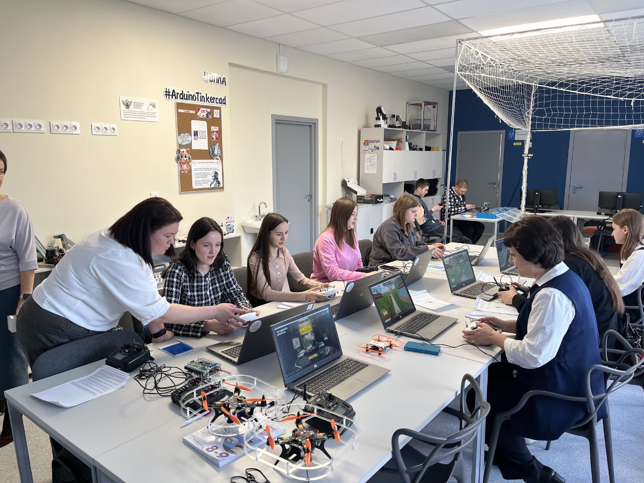 «IT-куб» радушно встретил будущих учителей, познакомив их с широким спектром направлений деятельности. Студенты узнали о возможностях центра по обучению детей современным IT-технологиям, от программирования до робототехники. Кульминацией визита стали мастер-классы, где студенты смогли погрузиться в практическую работу. Они с энтузиазмом осваивали основы программирования роботов, учились управлять ими и наблюдали, как собранные конструкции оживают. Не меньший интерес вызвал мастер-класс по мобильной разработке приложений, где будущие педагоги попробовали себя в роли создателей цифровых продуктов.