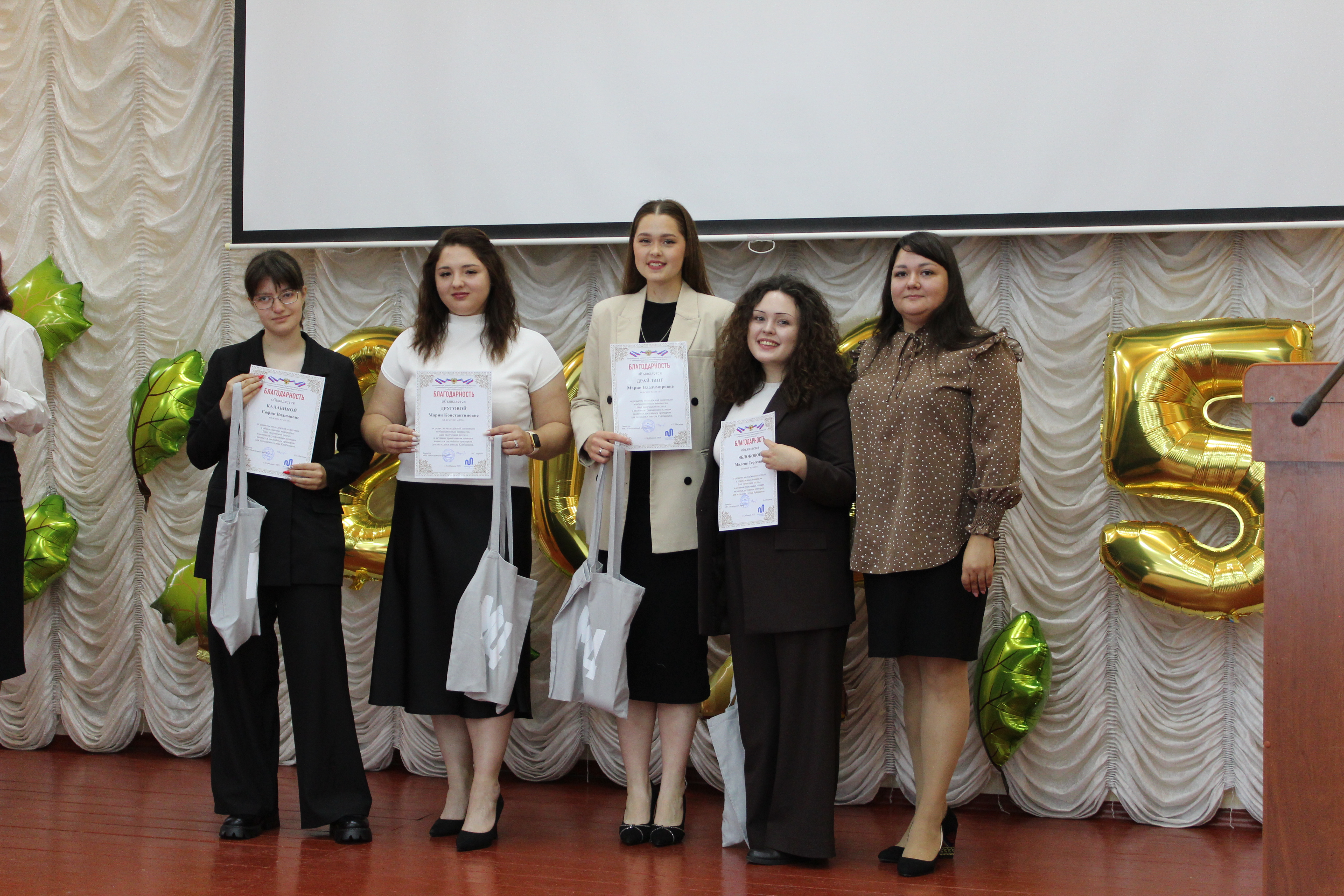 В рамках мероприятия особое внимание было уделено студентам, чья активная гражданская позиция и вовлеченность в реализацию молодежной политики города Куйбышева заслуживают самой высокой оценки. Заслуженными наградами и ценными призами были отмечены: Другова Мария, студентка 5 курса, Калабина София, студентка 4 курса, Драйлинг Мария, студентка 2 курса, Яблокова Милена, студентка 4 курса. Награды вручила начальник отдела ЦМД «Комета» Муниципального казенного учреждения города Куйбышева Куйбышевского района Новосибирской области «Молодежный центр», выпускница КФ ФГБОУ ВО “НГПУ”, М.В. Дубкова, подчеркнув преемственность поколений и важность активной жизненной позиции. От всей души поздравляем номинантов и желаем не останавливаться на достигнутом!