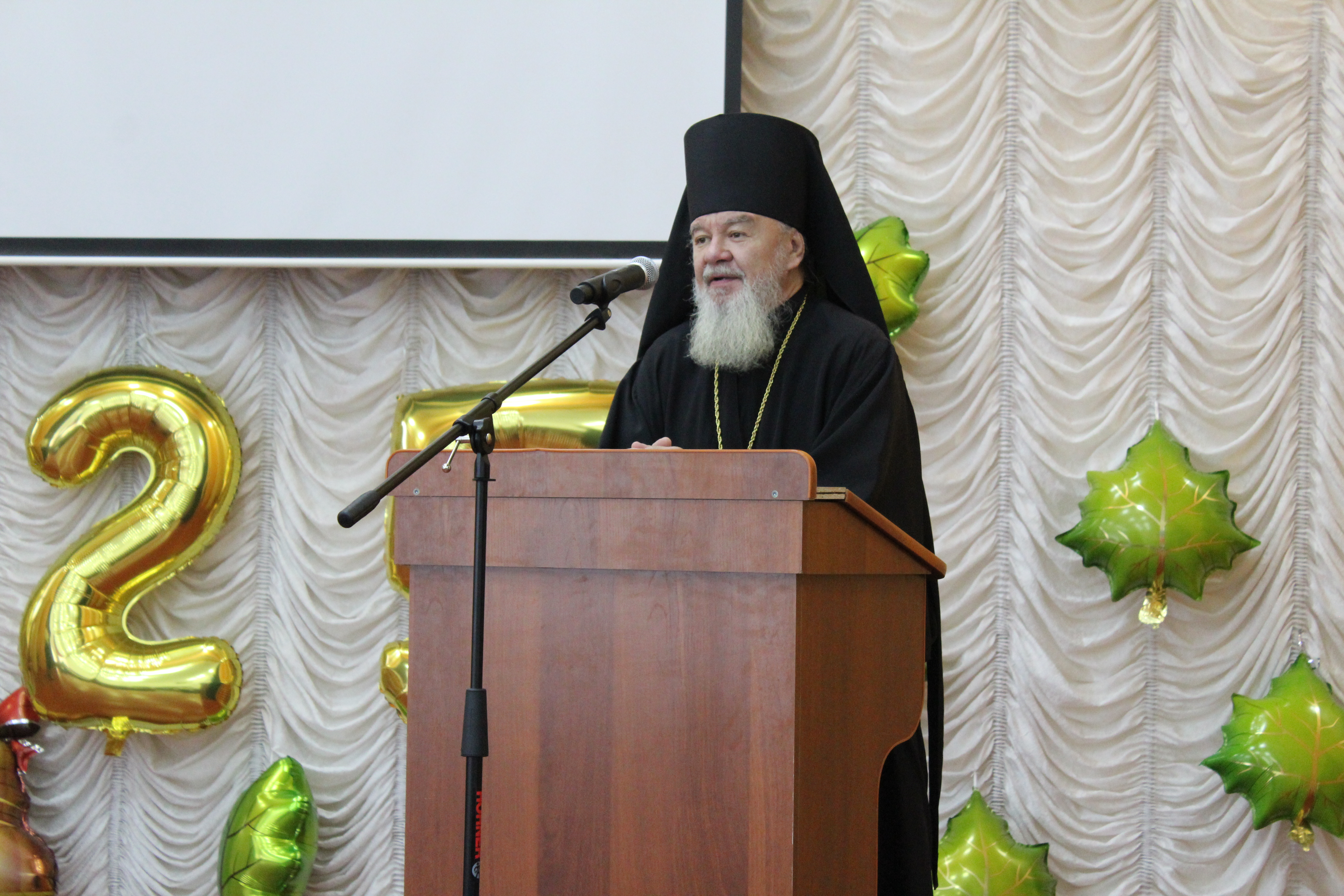 Торжественную линейку открыла директор филиала, кандидат педагогических наук, доцент Н.В. Гутова, поприветствовав всех собравшихся и обозначив главные векторы развития филиала в новом учебном году. Важным гостем праздника стал епископ Каинский и Барабинский Владыка Владимир, который обратился к студентам с вдохновляющей речью и преподал всем свое благословение.