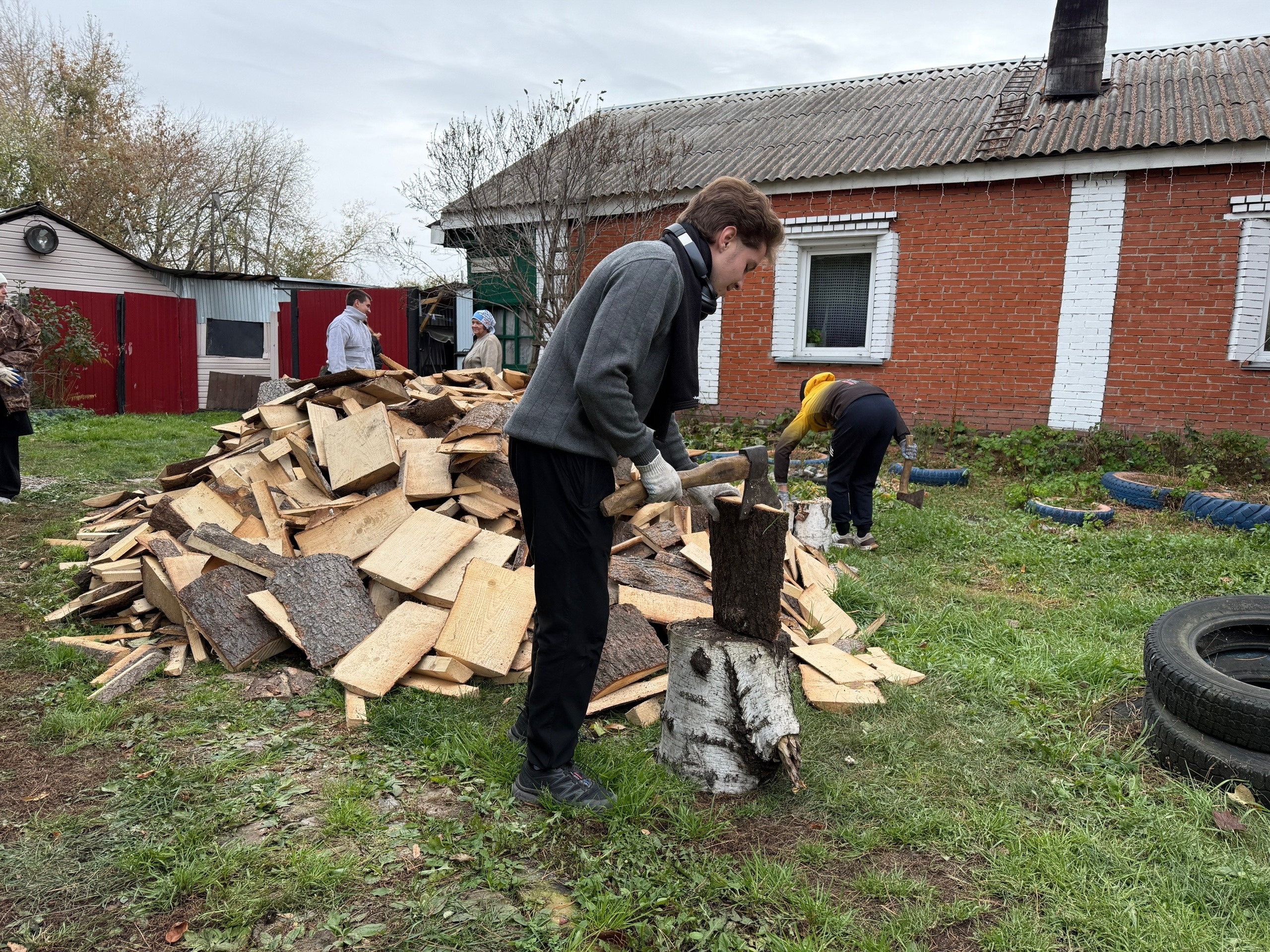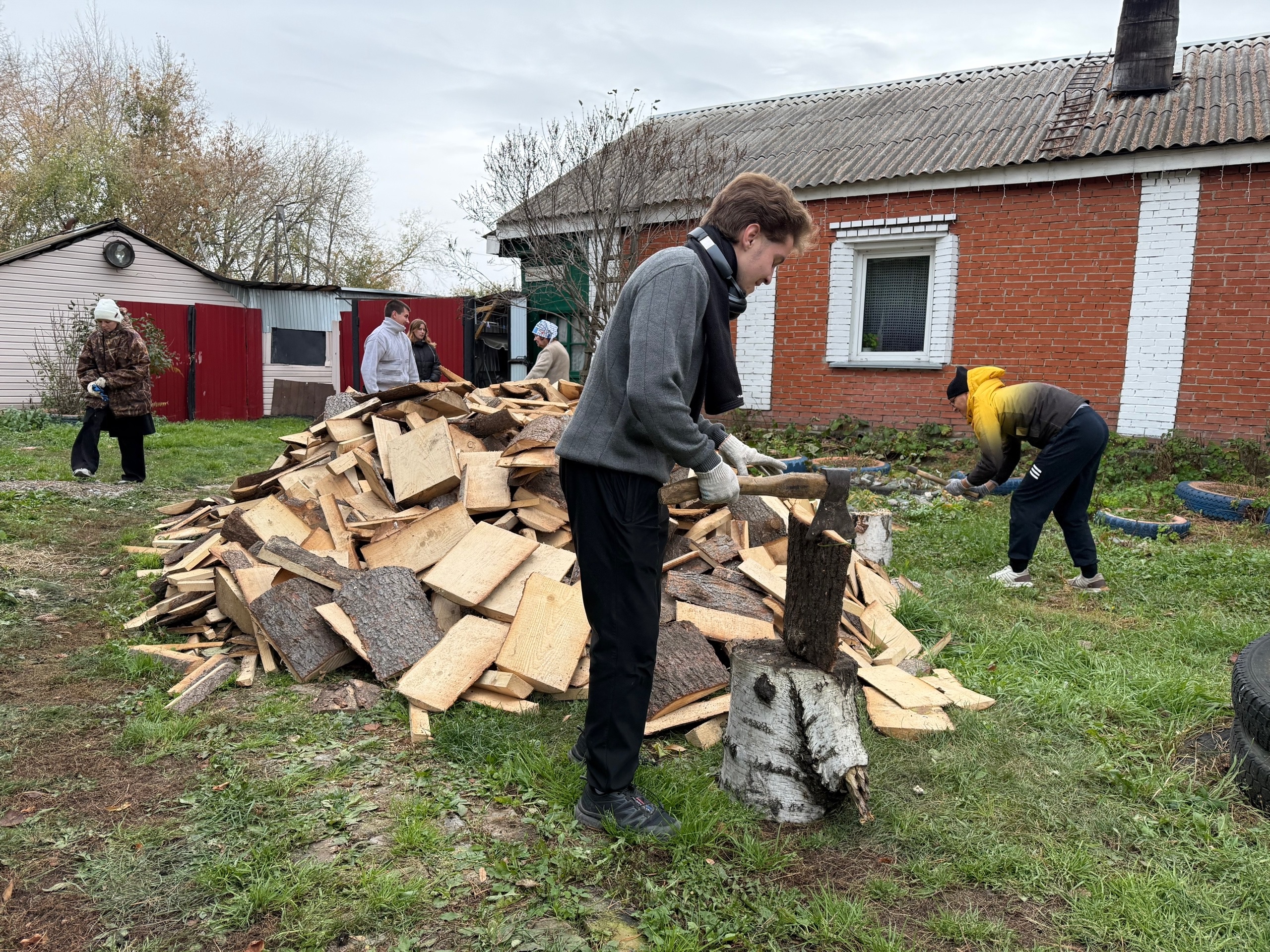 Волонтерский отряд «Искра» во главе с Анастасией Бурдыко, в составе дружной команды, куда вошли Анна Бугун, Тамара Махнёва, Никита Матвеев, Адам Мехтиев и Сергей Скоробогатов, помог 74-летней женщине подготовиться к предстоящей зиме. Задача была непростой – наколка и складирование дров. Однако студенты справились с ней блестяще, продемонстрировав силу, сплоченность и готовность прийти на помощь тем, кто в ней нуждается.