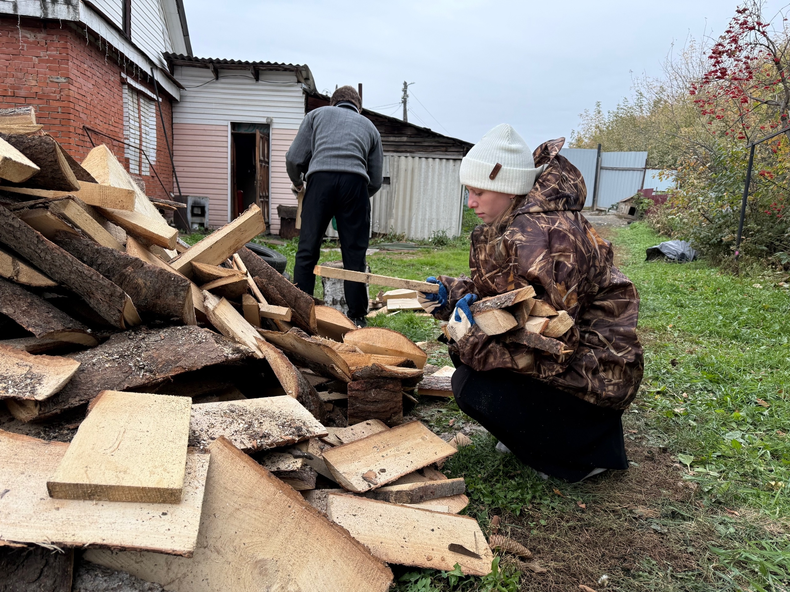 «Искра» не впервые приходит на помощь этой семье. Ежегодно волонтеры помогают Надежде с уборкой снега, проводят весенние субботники по очистки придомовой территории от сухой травы и мусора. Сейчас, когда на пороге холода, пришло время позаботиться о тепле в доме. Пожилая женщина уже знает, что студенты КФ НГПУ всегда придут на помощь. За короткое время было расколото внушительное количество дров. Но на этом забота не закончилась: ребята аккуратно сложили дрова в ровные поленницы, обеспечив не только достаточный запас на зиму, но и удобное и безопасное хранение.