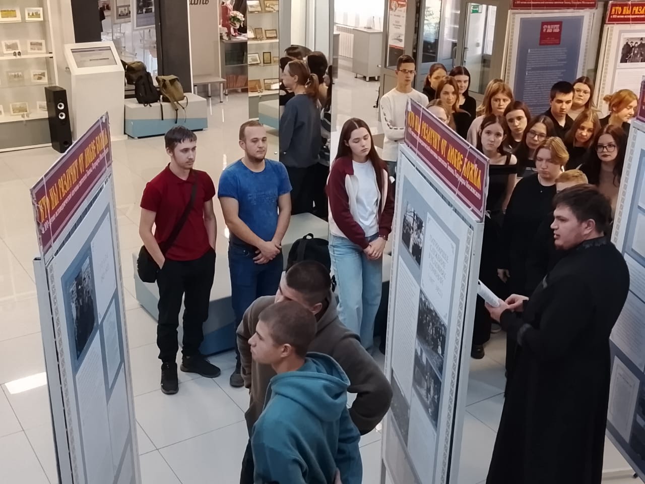 22 октября 2025 года студенты Куйбышевского филиала ФГБОУ ВО «НГПУ» в рамках духовно-нравственного и патриотического воспитания посетили передвижную выставку «Кто ны разлучит от любве Божия».