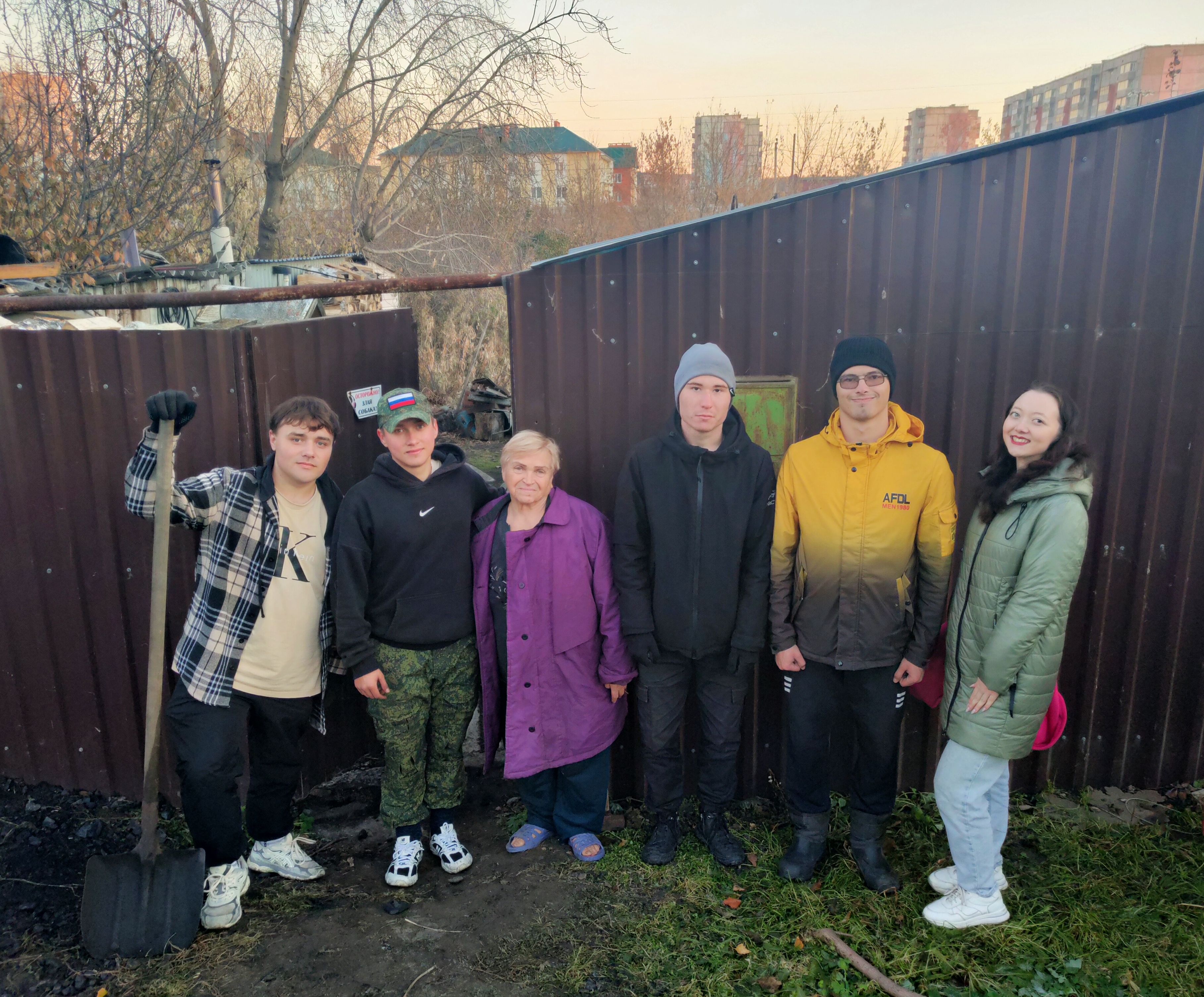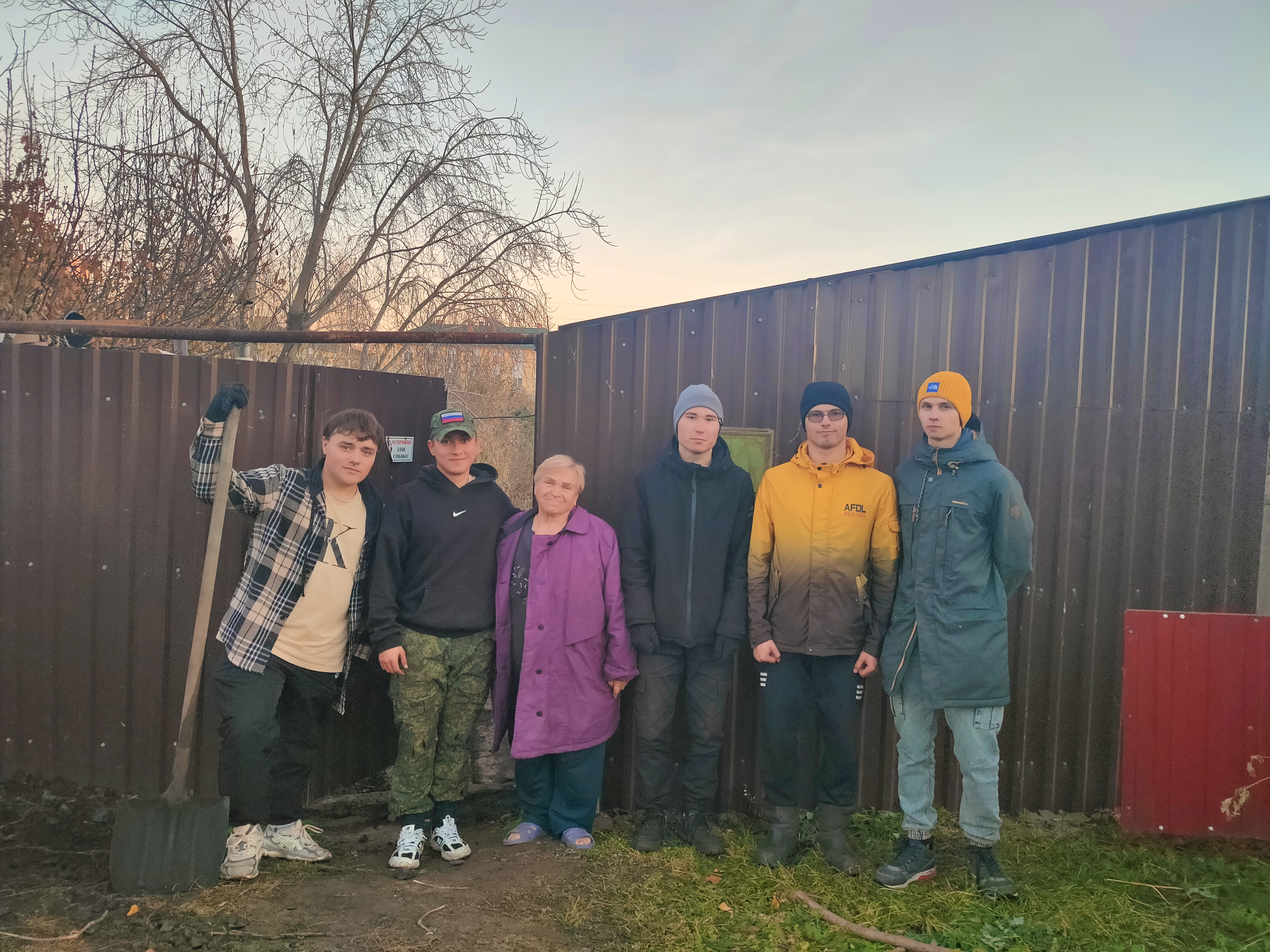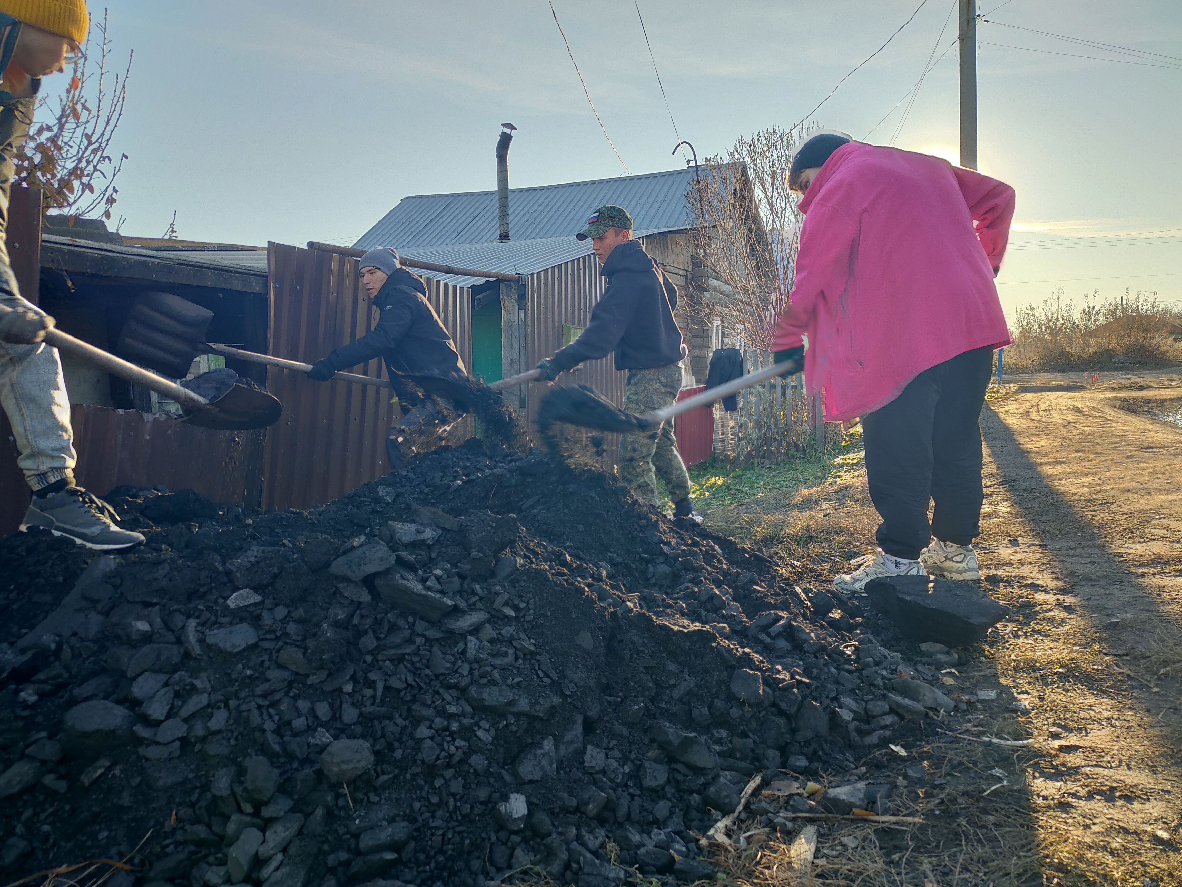 В этот день команда волонтёров, в составе которой были Сидоров Артём, Денисов Александр, Оскома Андрей, Мехтиев Адам и Булатов Степан, под руководством Бурдыко Анастасии, помогли Валентине Васильевне в тяжёлой физической работе – перекидывании угля. Этот простой, но очень важный для пенсионерки труд, стал ярким примером того, как молодое поколение может поддержать и оказать помощь тем, кто в ней нуждается.