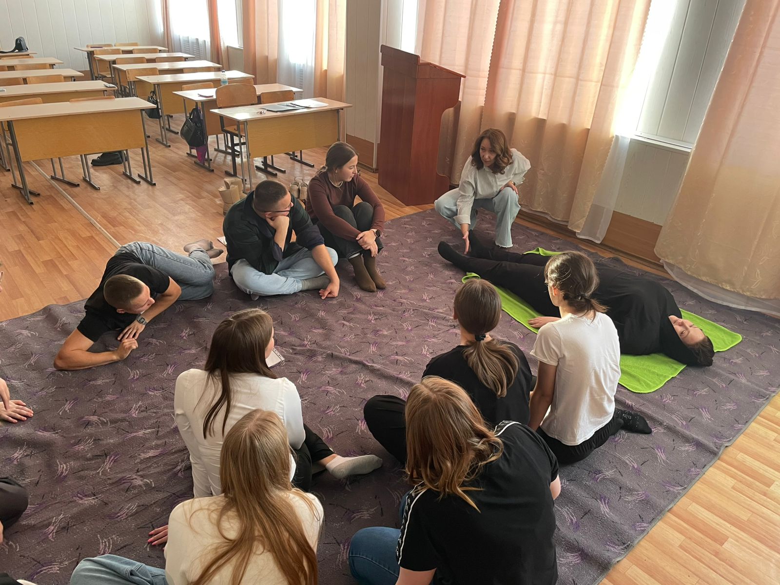Ведущая Бочкарева Ирина Николаевна профессионально и увлекательно познакомила студентов с понятием телесно-ориентированной терапии, ее ключевыми принципами и возможностями. Было очень полезно узнать об основах этого направления и его роли в психологической практике.