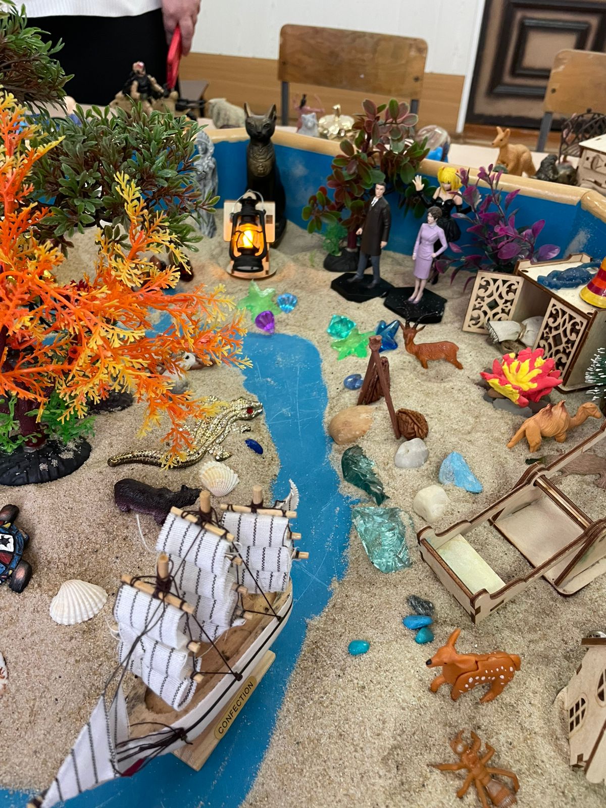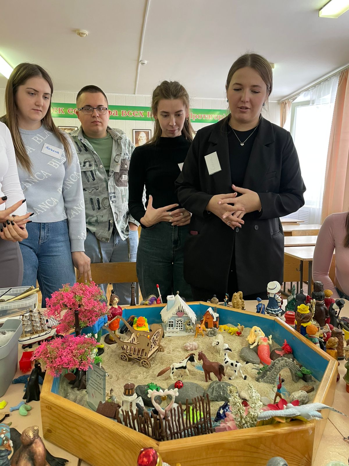 Особый интерес и восторг вызвали групповые практические упражнения. Возможность своими руками создавать «песочные картины» и интерпретировать их вместе с группой стала мощным инструментом для саморефлексии и понимания процессов, происходящих внутри нас. Групповая техника «Мой мир» была особенно впечатляющей, позволив увидеть проекции нашего внутреннего мира через созданный образ в песочной композиции.