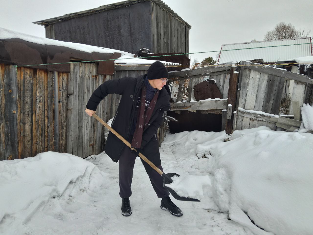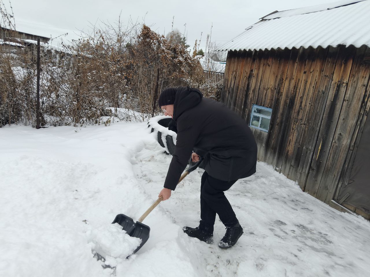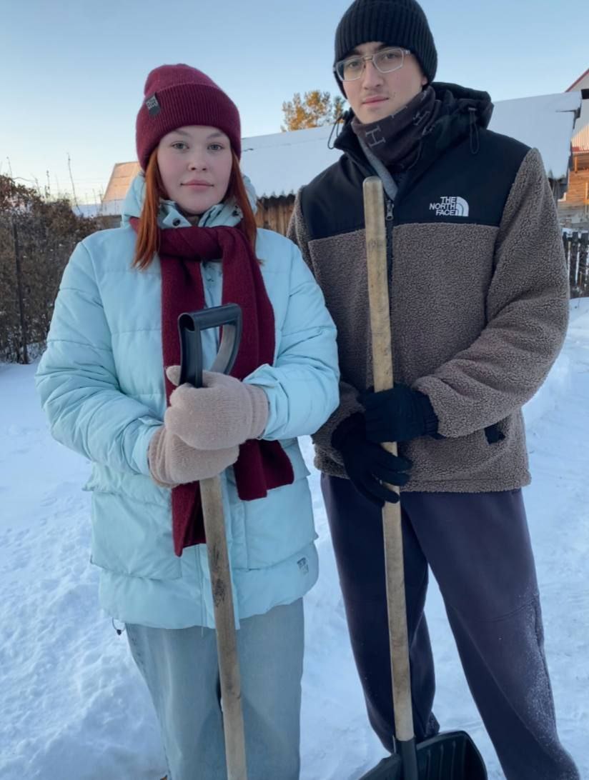 Добровольцы волонтёрского отряда «Искра» Никитин Тимофей, Гордиенко Кирилл и Цеценко Ольга убрали снежные заносы на придомовой территории пожилой женщины.
