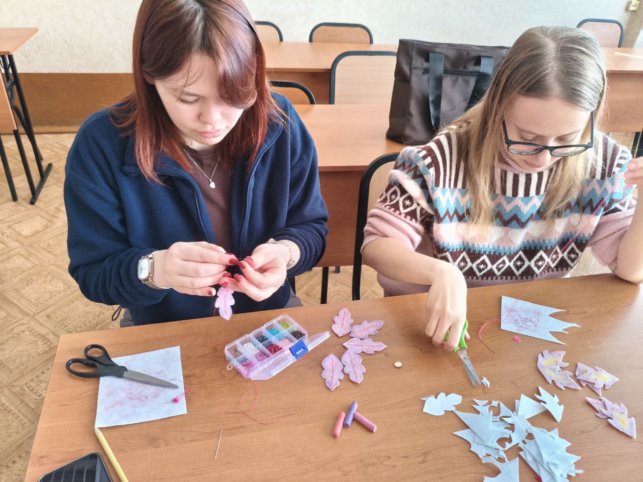 Мастер-класс провела наша талантливая и инициативная студентка 4 курса факультета психолого-педагогического образования – Котова Дарья. Под чутким руководством Дарьи, студенты с удовольствием осваивали новые техники кроя, сшивания, окрашивания, декорирования бисером.